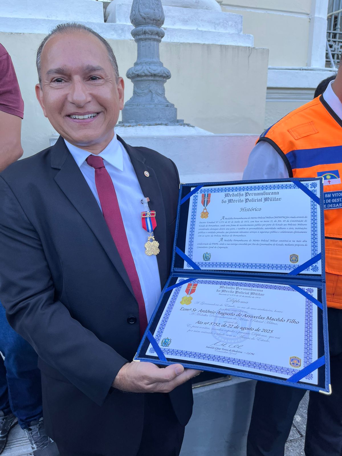 Um dos destaques da solenidade foi a entrega da Medalha Pernambucana do Mérito Policial Militar, a mais alta comenda da PMPE. Entre os agraciados estava o Promotor de Justiça do Ministério Público de Pernambuco (MPPE), Antonio Arroxelas.